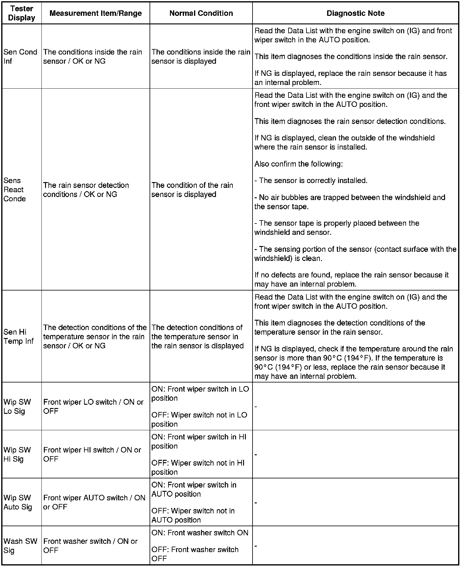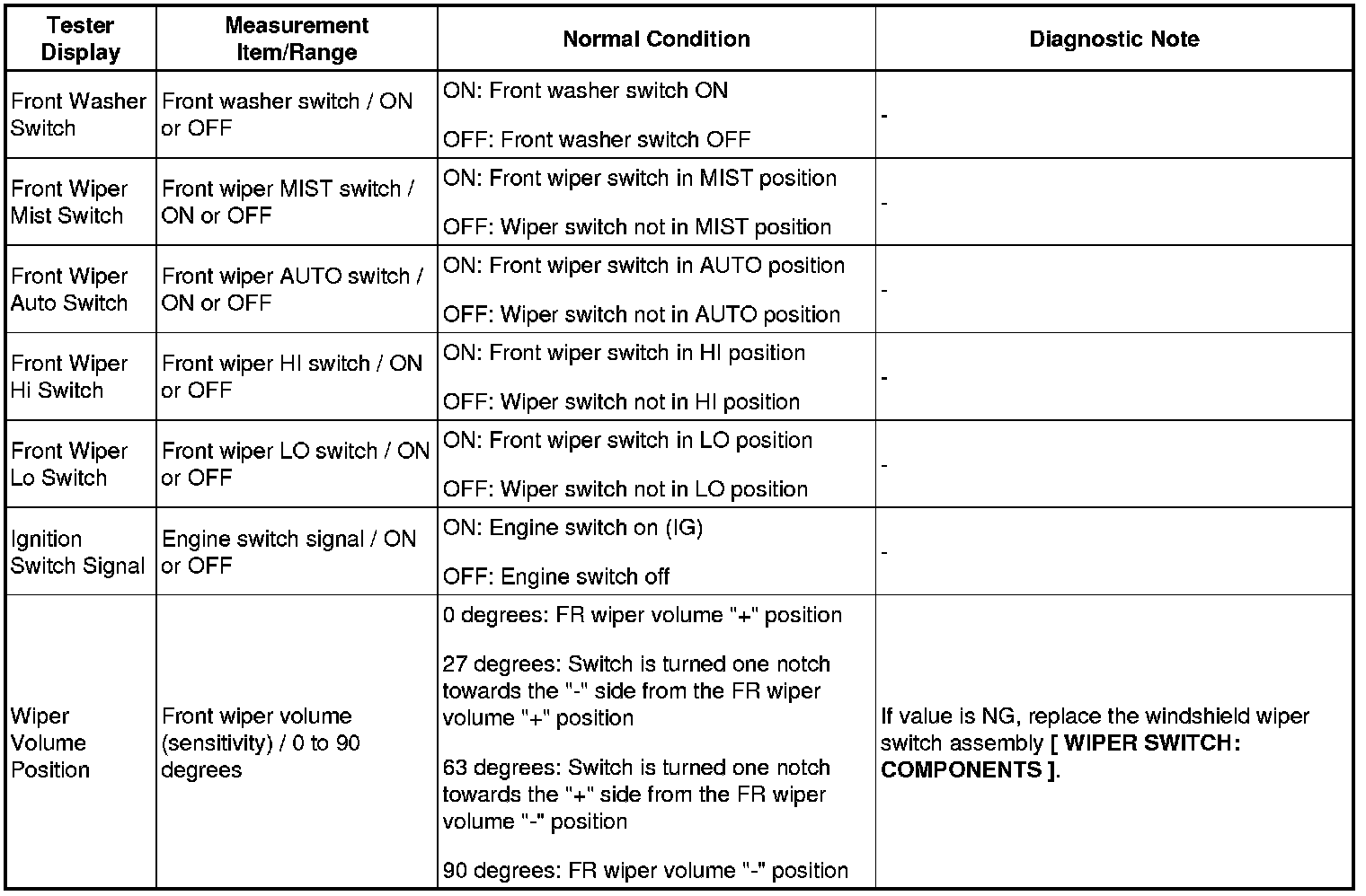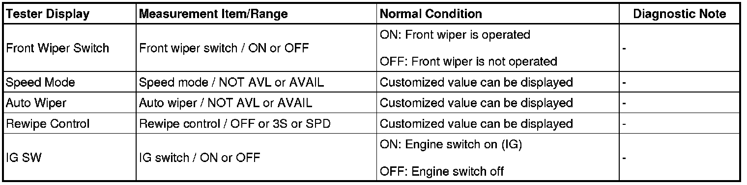 WIPER / WASHER: WIPER AND WASHER SYSTEM: DATA LIST / ACTIVE TEST