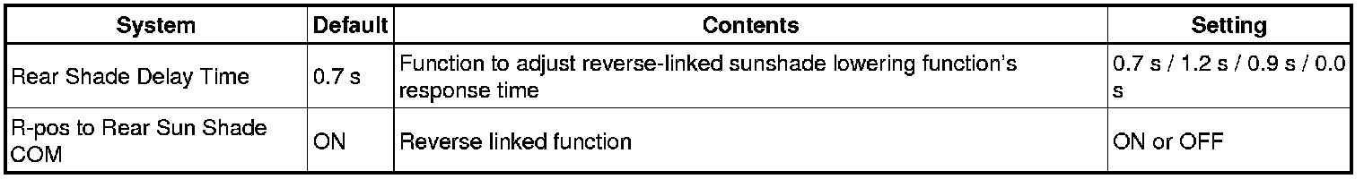 INTERIOR: REAR SUNSHADE SYSTEM: CUSTOMIZE PARAMETERS