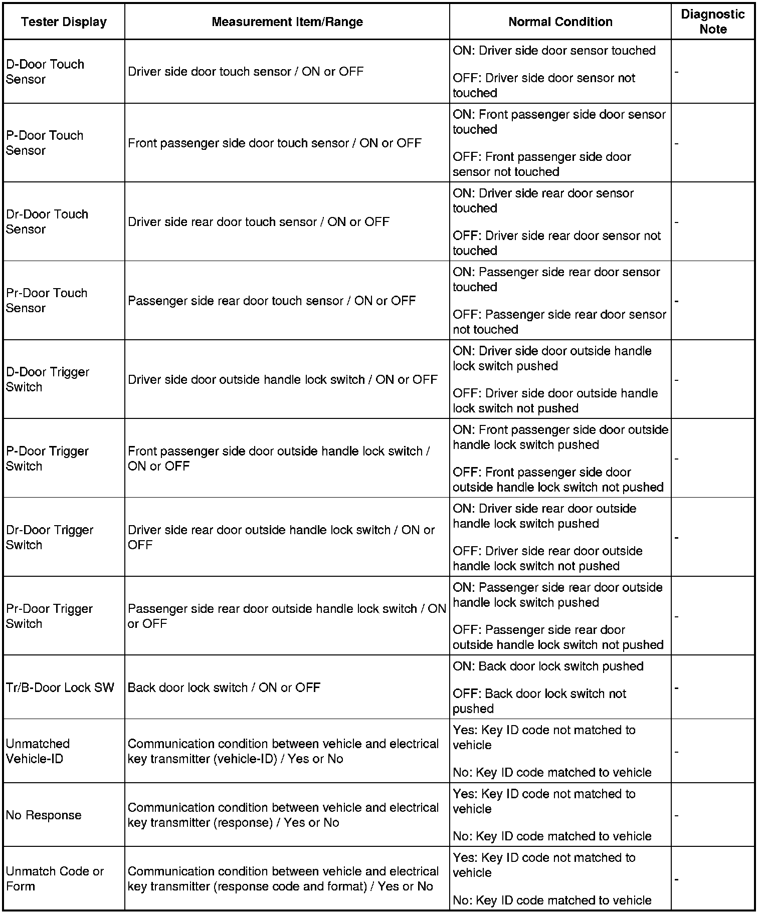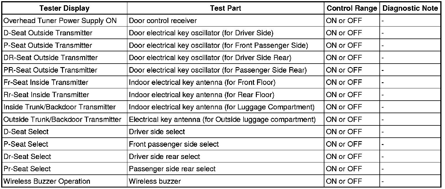 THEFT DETERRENT / KEYLESS ENTRY: SMART ACCESS SYSTEM WITH PUSH-BUTTON START (for Entry Function): DATA LIST / ACTIVE TEST