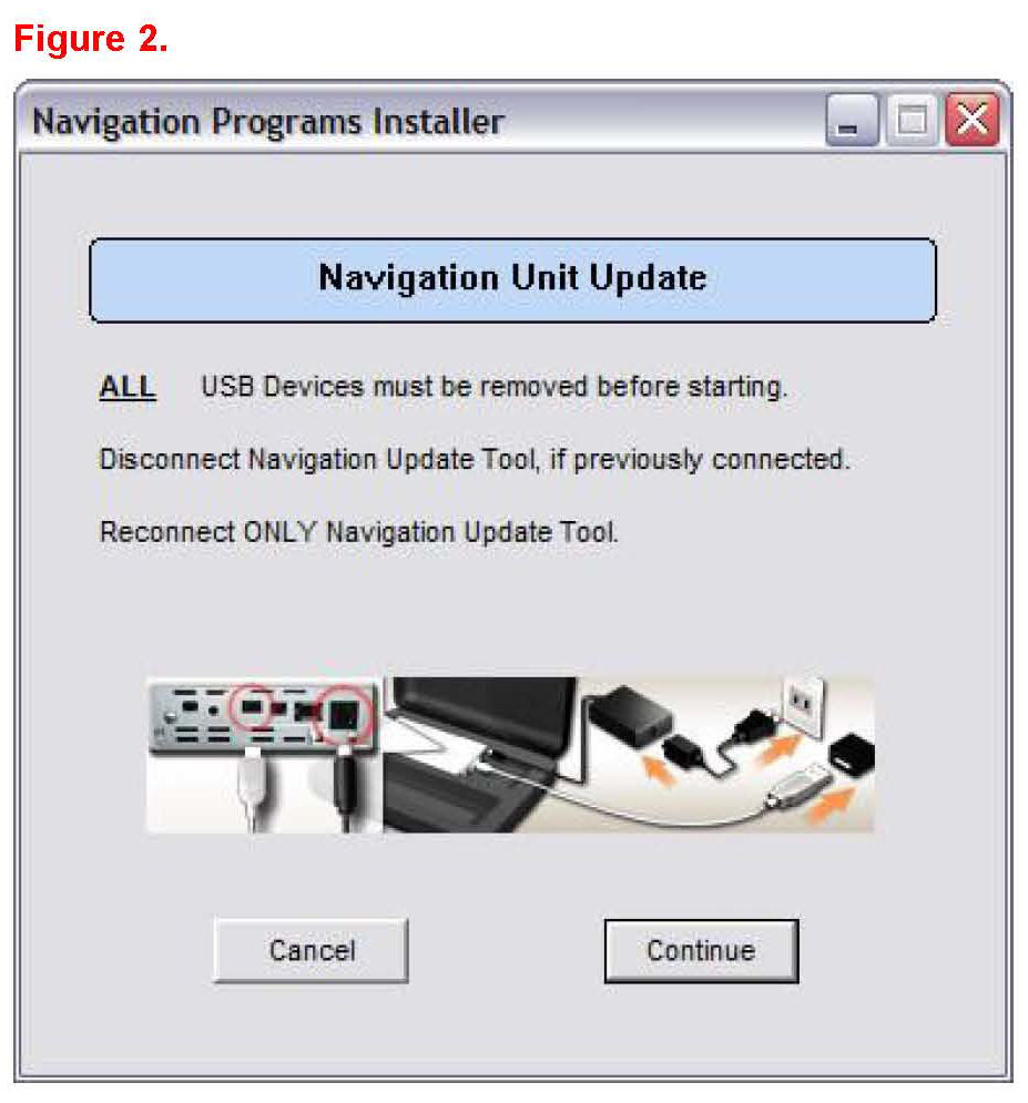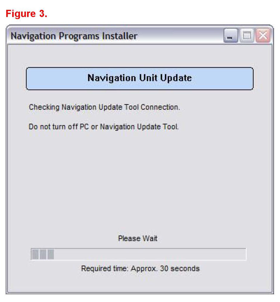 1. Connect the Navigation Update Tool to the vehicle (Tool MUST be disconnected from the PC).