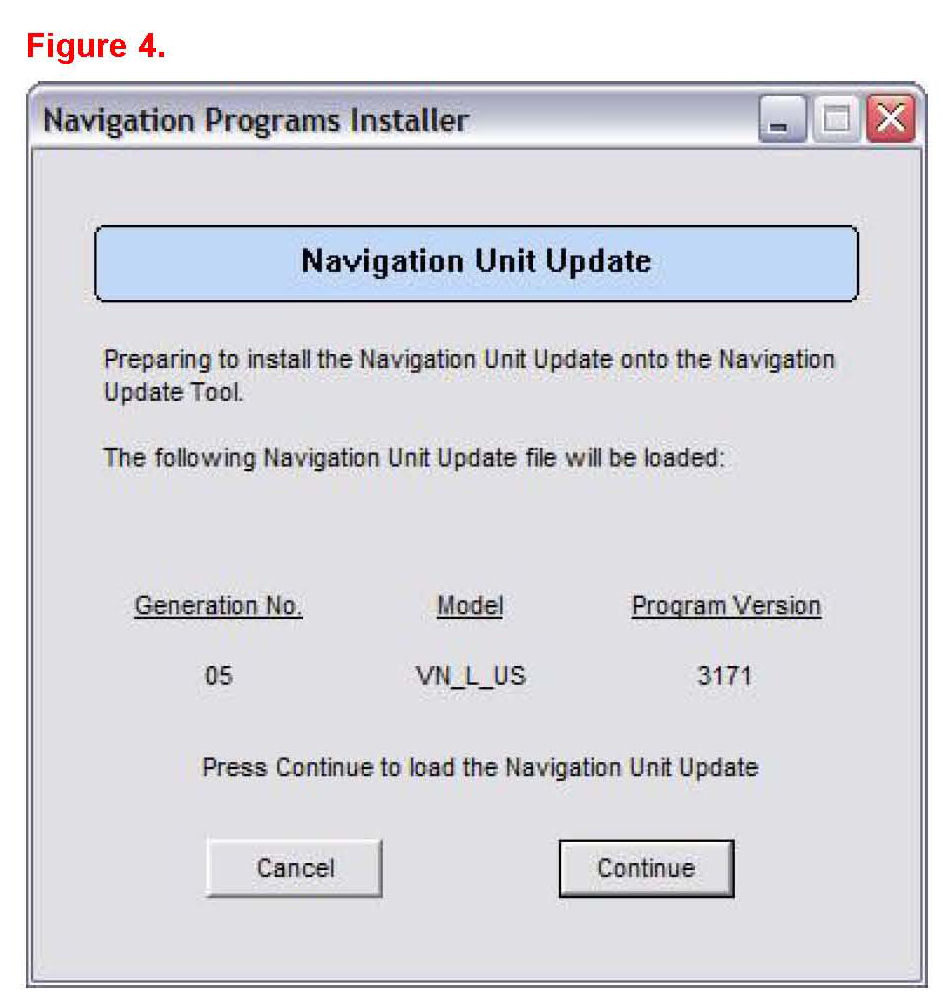 8. Navigation Firmware is ready to be loaded onto the Navigation Update Tool click Continue.