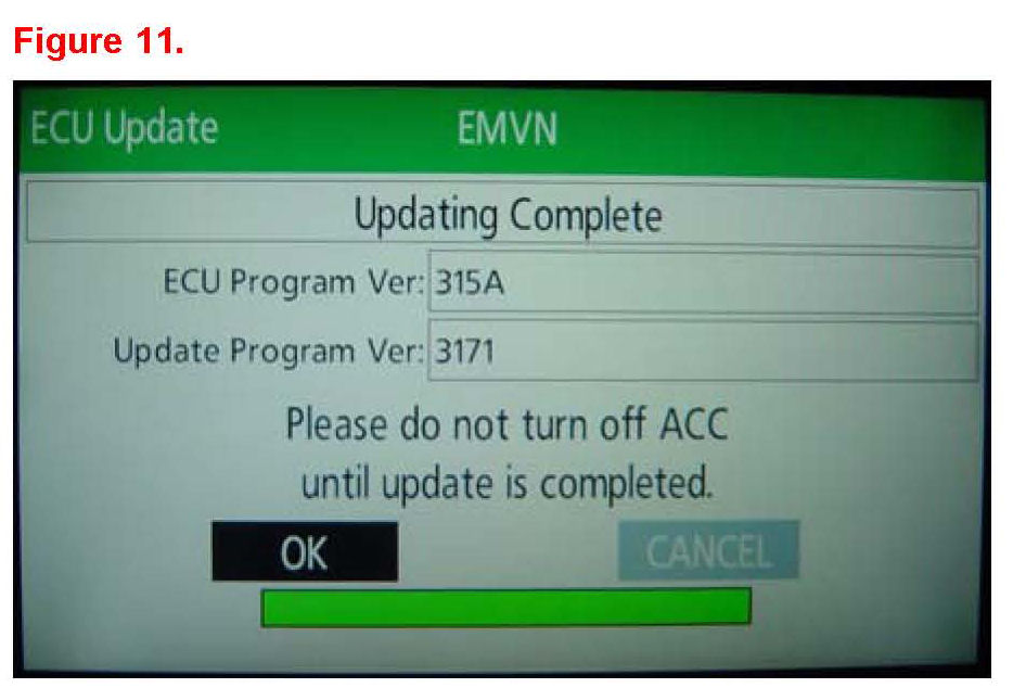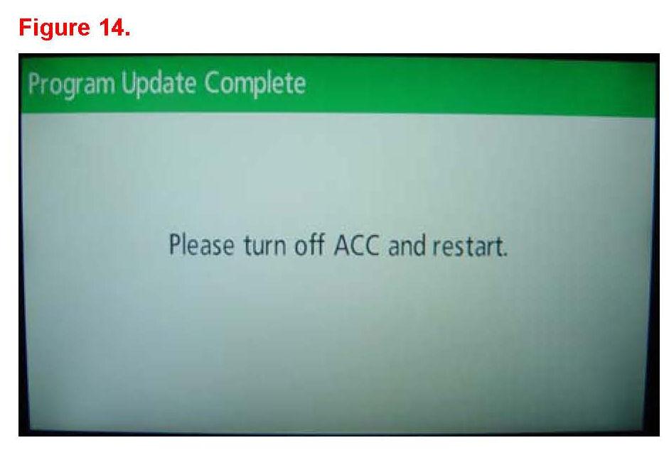 14. Cycle the ignition ON and verify normal Navigation System operation. Update is complete.