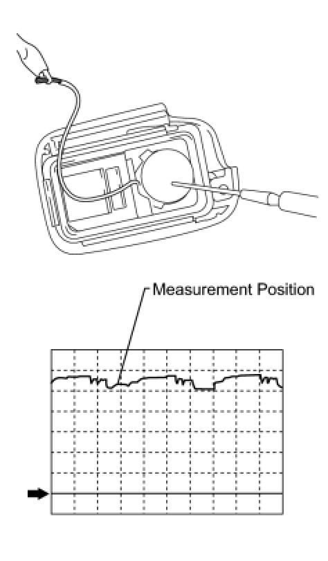 Before measuring the battery voltage, make sure that the positive side of the battery is set towards the LEXUS mark side.