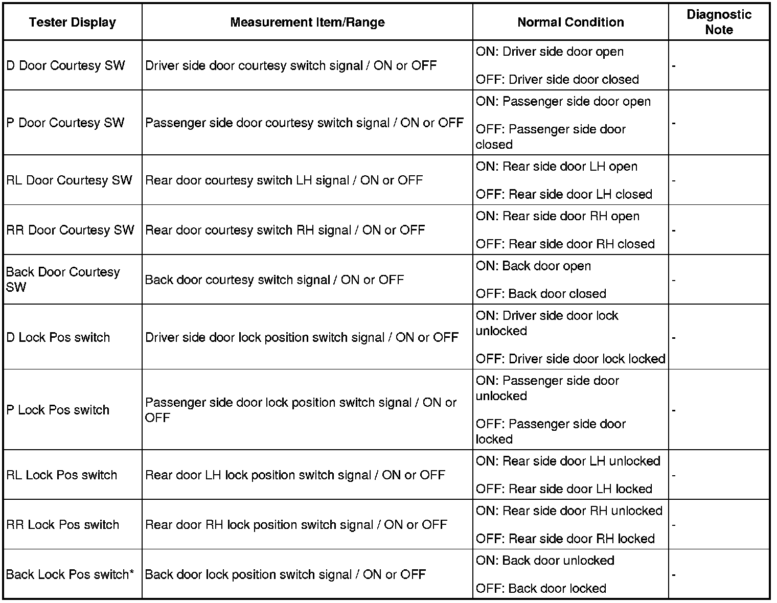 DOOR LOCK: WIRELESS DOOR LOCK CONTROL SYSTEM: DATA LIST / ACTIVE TEST