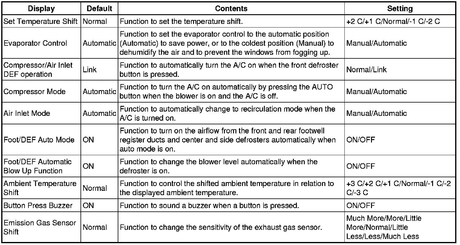 HEATING / AIR CONDITIONING: AIR CONDITIONING SYSTEM: CUSTOMIZE PARAMETERS