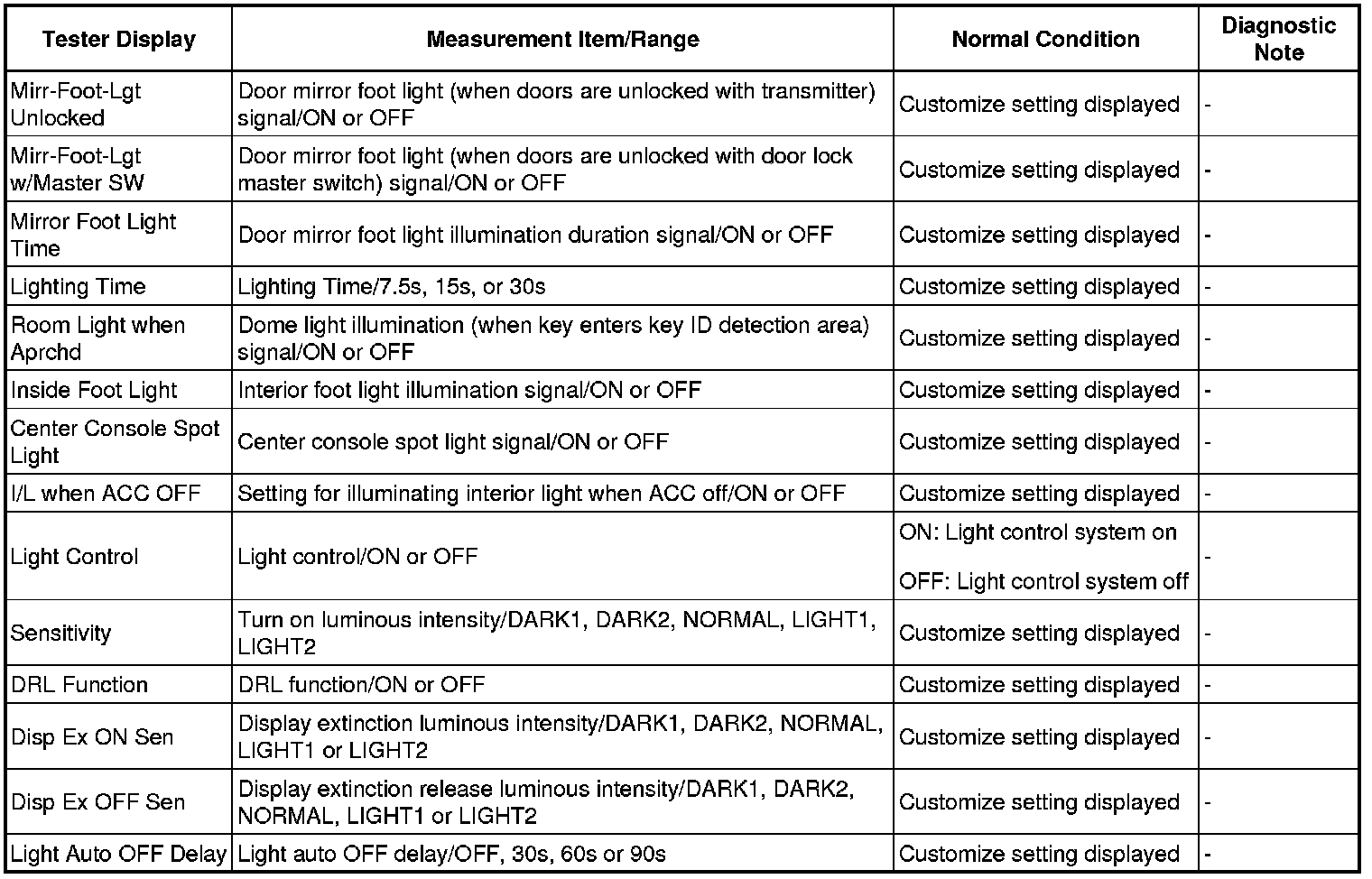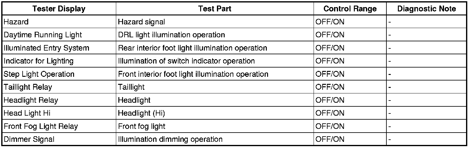 LIGHTING (EXT): LIGHTING SYSTEM: DATA LIST / ACTIVE TEST