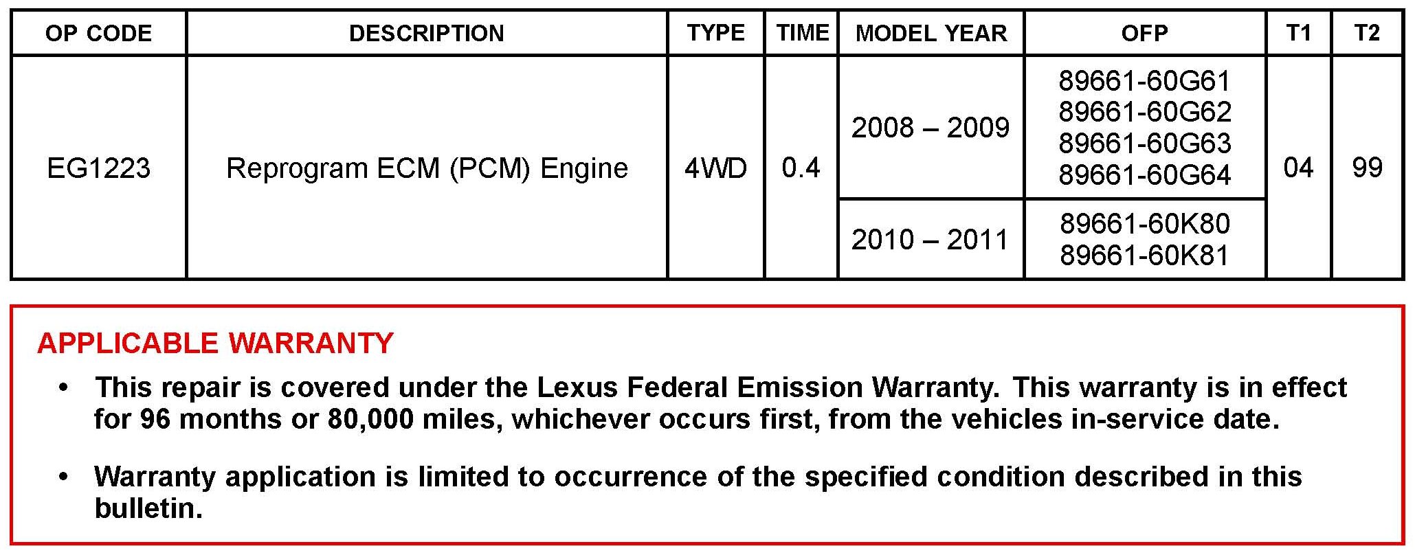 Some 2008 - 2011 model year LX 570 vehicles may exhibit a harsh shift on acceleration below 20 mph during the 2-1 downshift. The Engine Control Module/ECU (SAE term: Powertrain Control Module/PCM) calibration has been revised. Use the following repair procedure to address this condition.