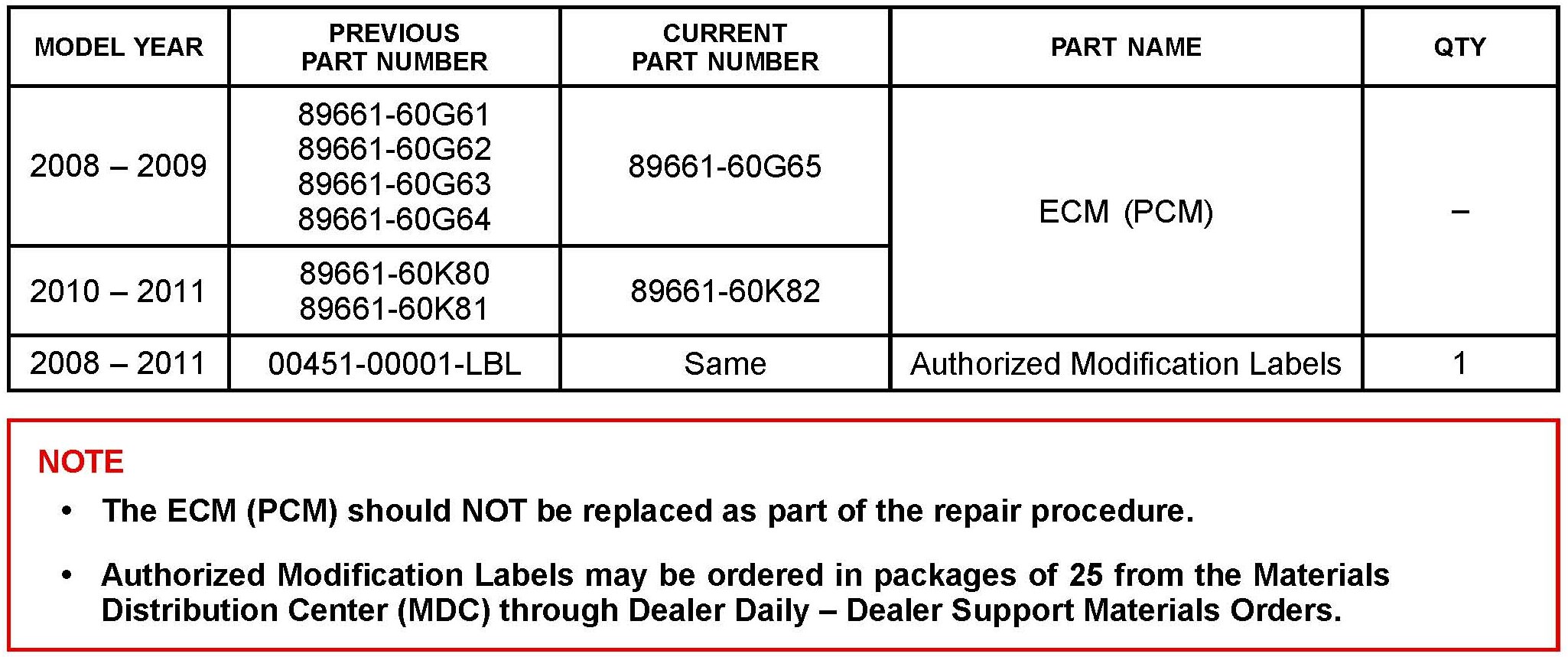 ^ ECM part number [Refer to the Parts Information section for the CURRENT PART NUMBER]