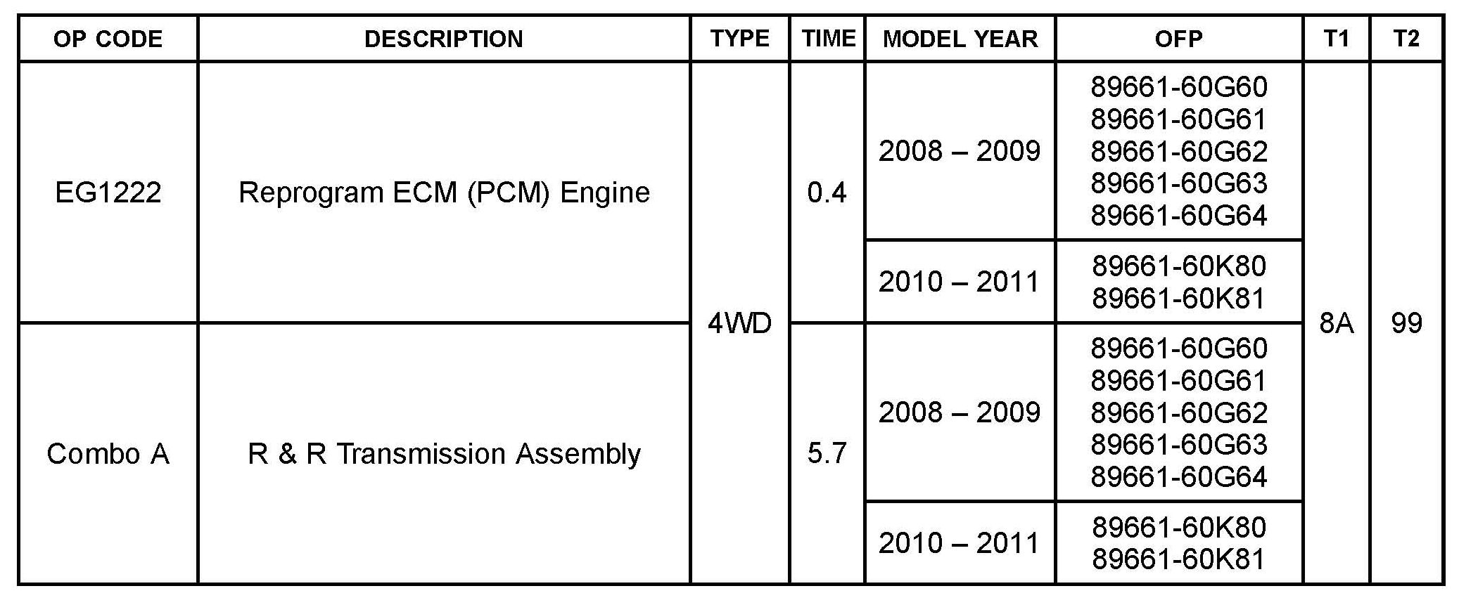 ^ YES - Reprogram the ECM (PCM) per steps 5 - 6, then replace the transmission assembly per step 8.