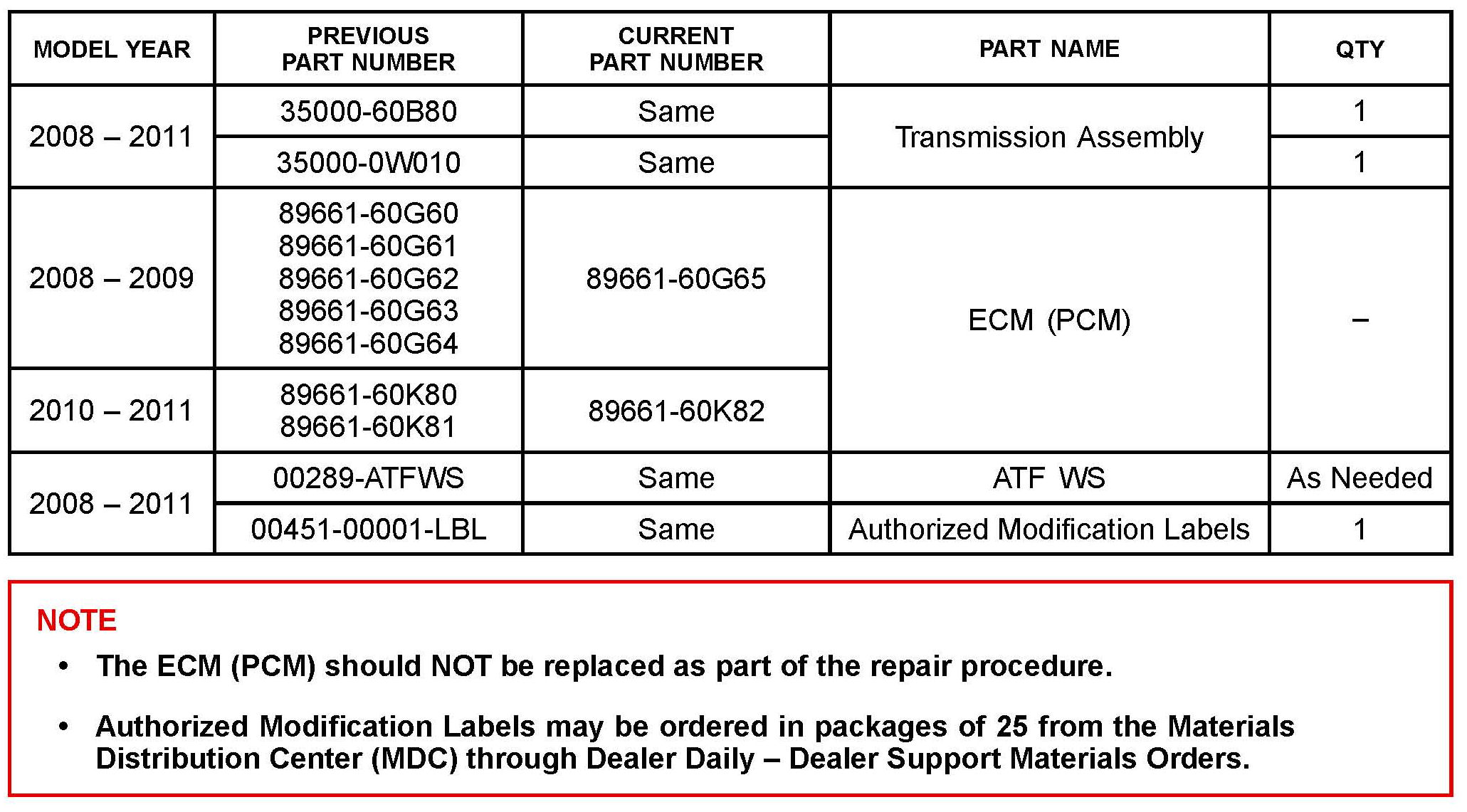 ^ ECM part number [Refer to the Parts Information section for the CURRENT PART NUMBER]