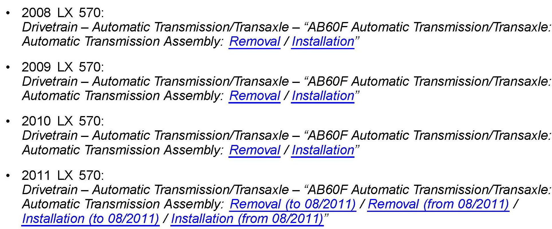 Drivetrain - Automatic Transmission/Transaxle - 'AB60F Automatic Transmission/Transaxle: