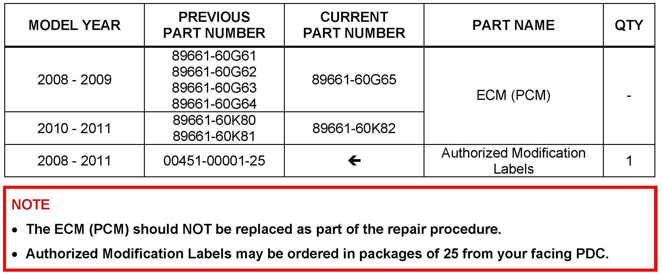 ^ ECM part number [Refer to the Parts In formation section for the CURRENT PART NUMBER]