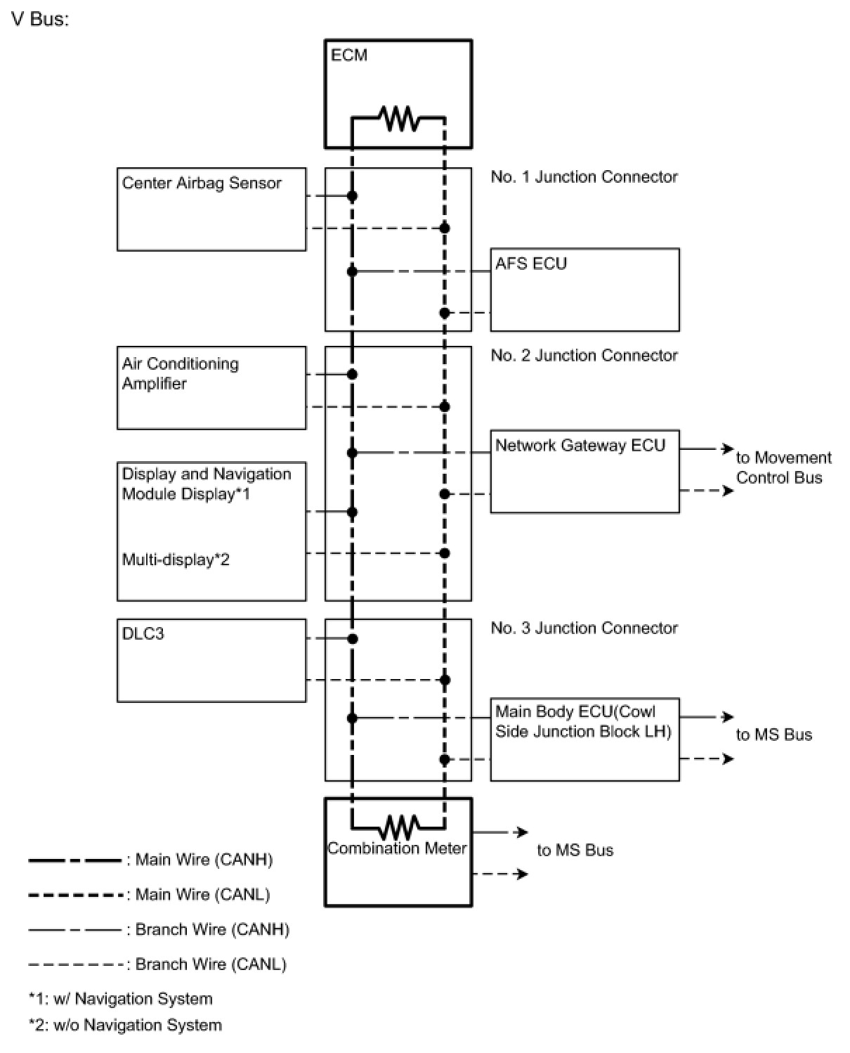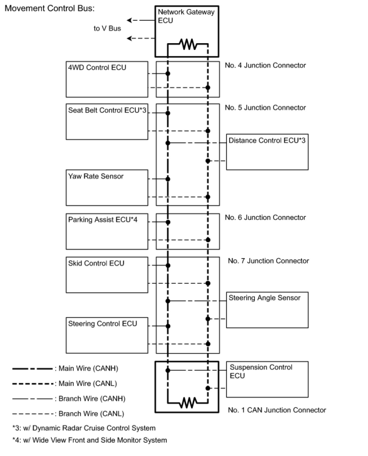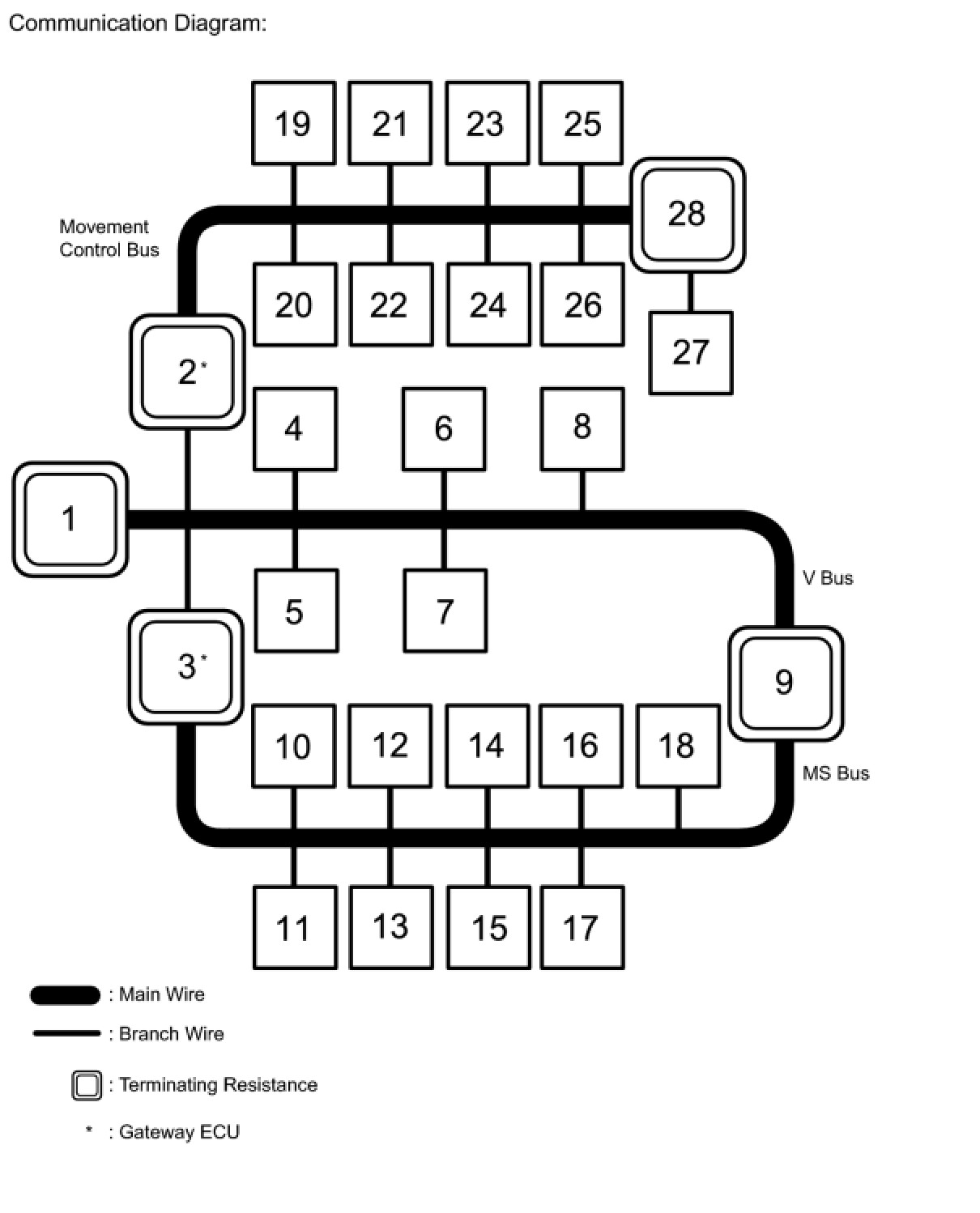 (1) The main wire is a wire harness between the 2 termination circuits on the bus (communication line). This is the main bus in the CAN communication system.