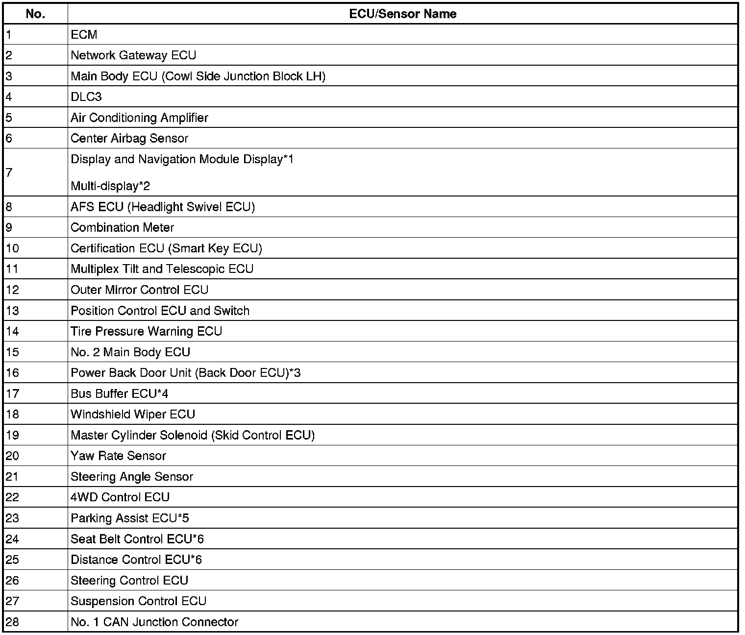 4. ECU OR SENSOR WHICH COMMUNICATE VIA CAN COMMUNICATION SYSTEM