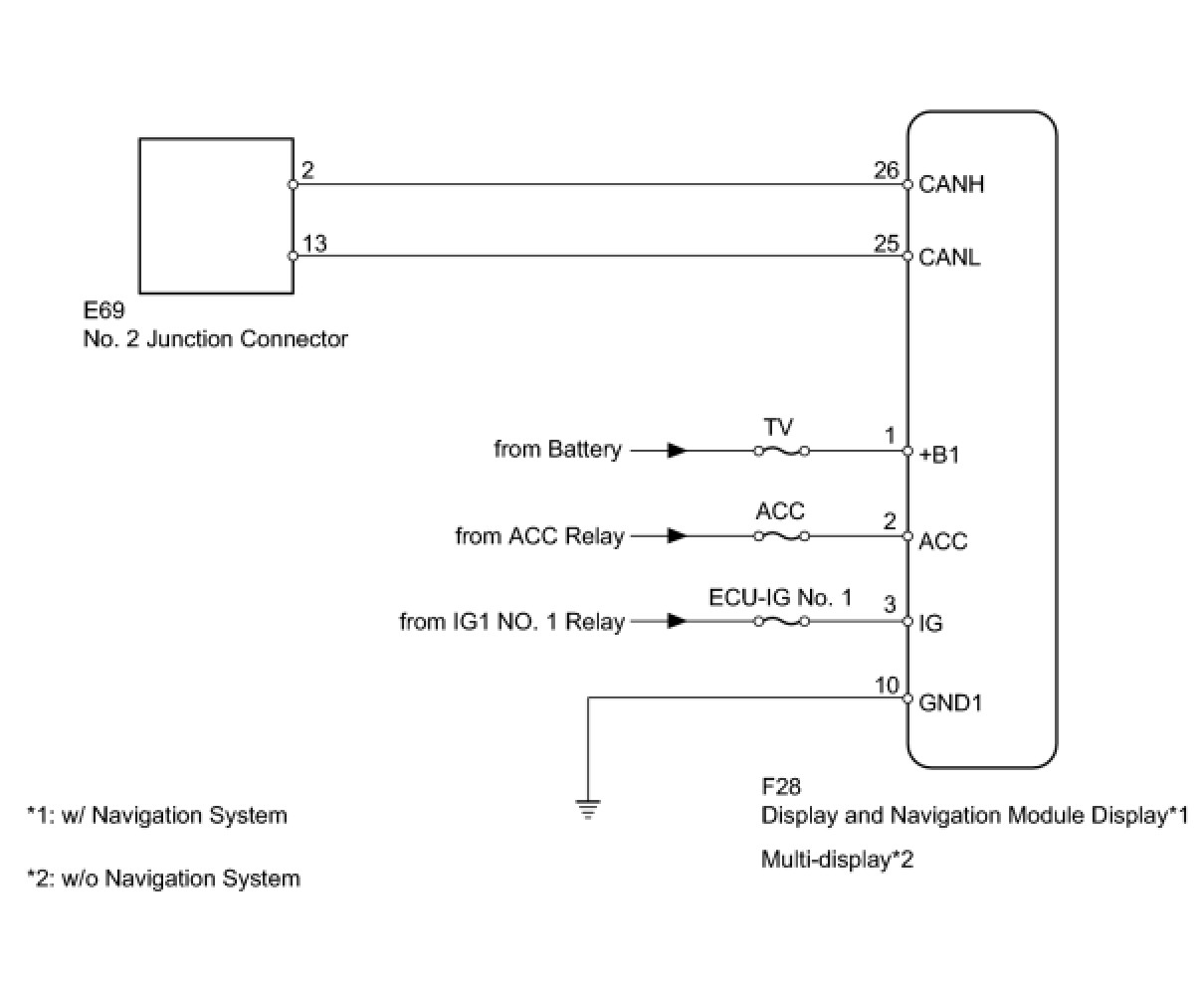 2. CHECK FOR OPEN IN CAN BUS WIRE (DISPLAY AND NAVIGATION MODULE DISPLAY OR MULTI-DISPLAY BRANCH WIRE)