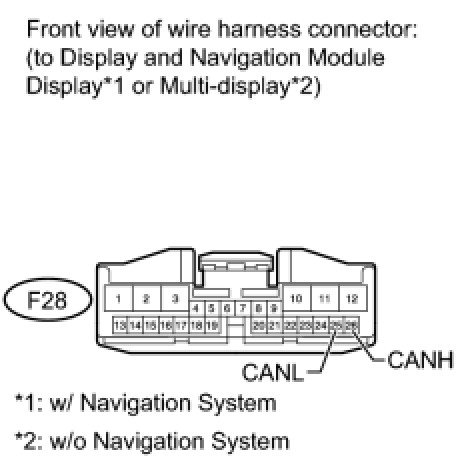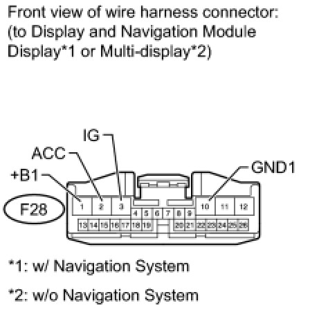 (b) Disconnect the F28 display and navigation module display*1 or multi-display*2 connector.