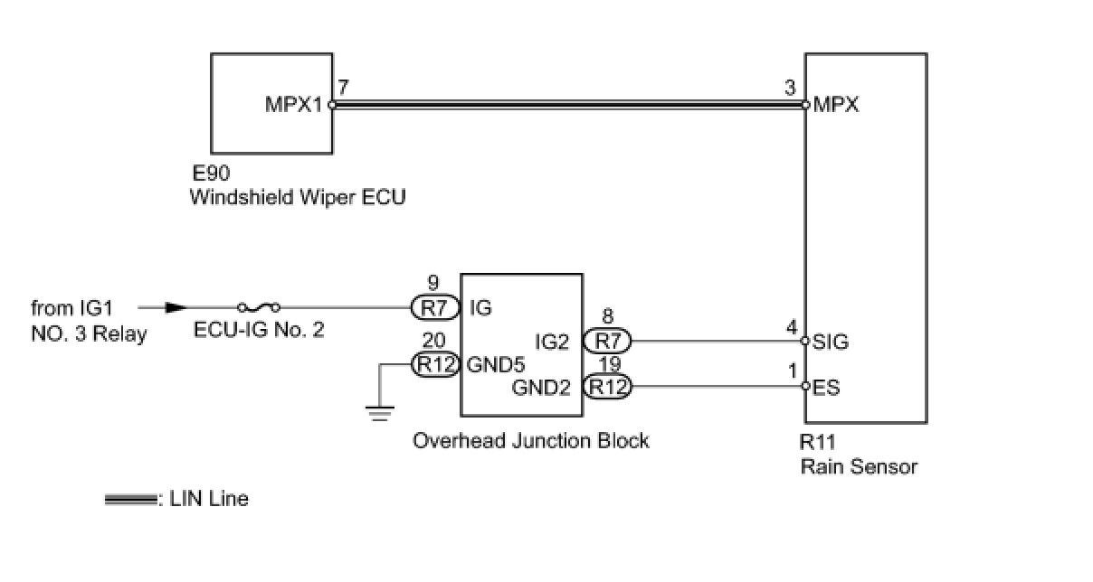 The LIN communication of the components related to the rain sensor occurs between the rain sensor and windshield wiper ECU.