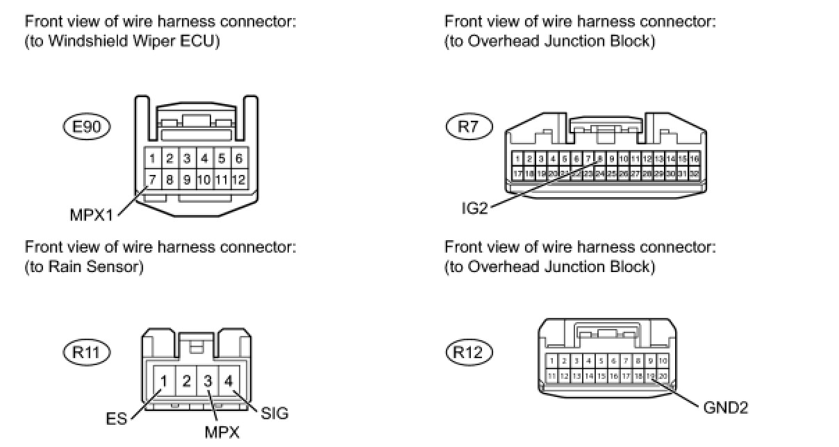 1. CHECK HARNESS AND CONNECTOR (RAIN SENSOR - WINDSHIELD WIPER ECU AND OVERHEAD JUNCTION BLOCK)