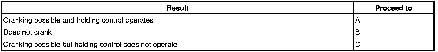 The cranking holding control system provides current to the starter when the ECM detects the engine switch start signal (STSW). When the ECM performs a firing judgment, the system cuts current to the starter. When an ECM receives the STSW signal, it turns on the ACC cut, which prevents flickering of the combination meter, clock, audio system, etc. Also, the ECM sends a signal to the ECM STAR terminal. Then the STAR output signal travels through the Park/Neutral Position (PNP) switch to the starter relay, causing the starter to activate.