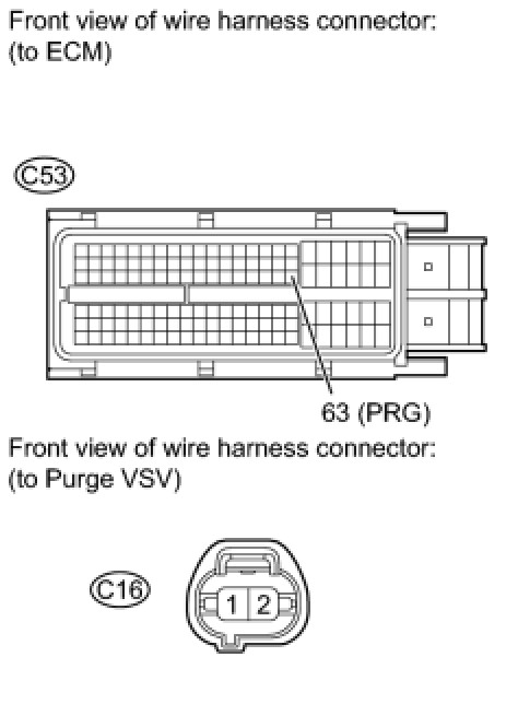 (a) Disconnect the C53 ECM connector and the C16 purge VSV connectors.