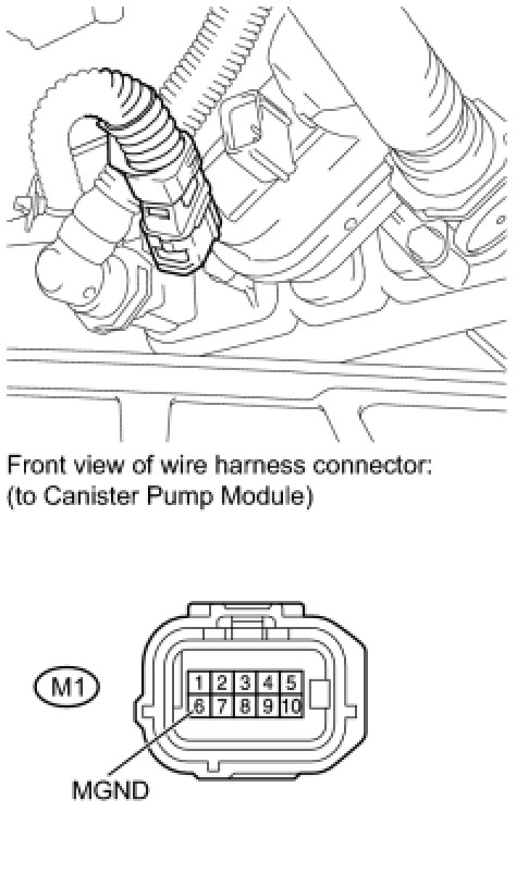 (b) Disconnect the M1 canister pump module connector.