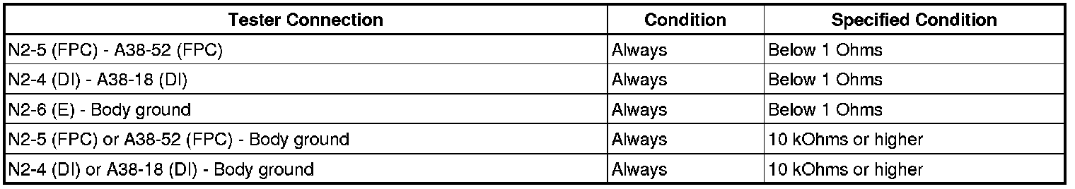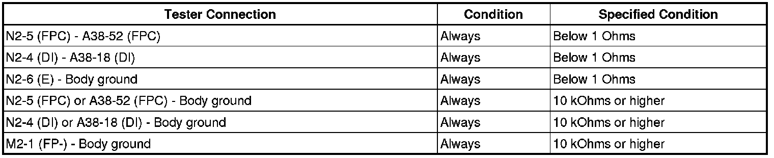 (h) Measure the resistance according to the value(s) in the table below.