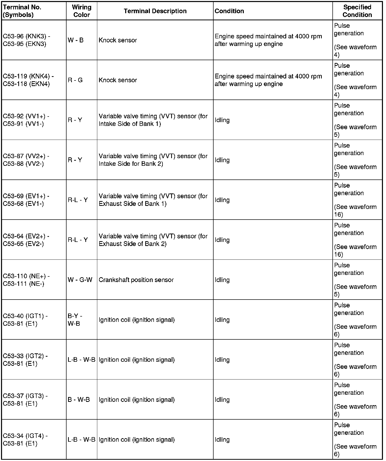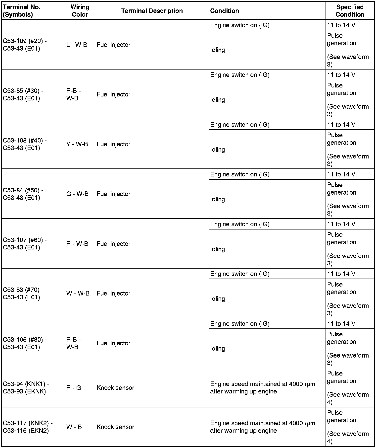 HINT: If the waveform is not similar to the illustration, check the waveform again after idling for 10 minutes or more.
