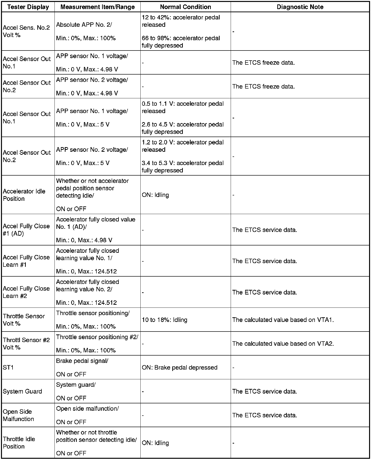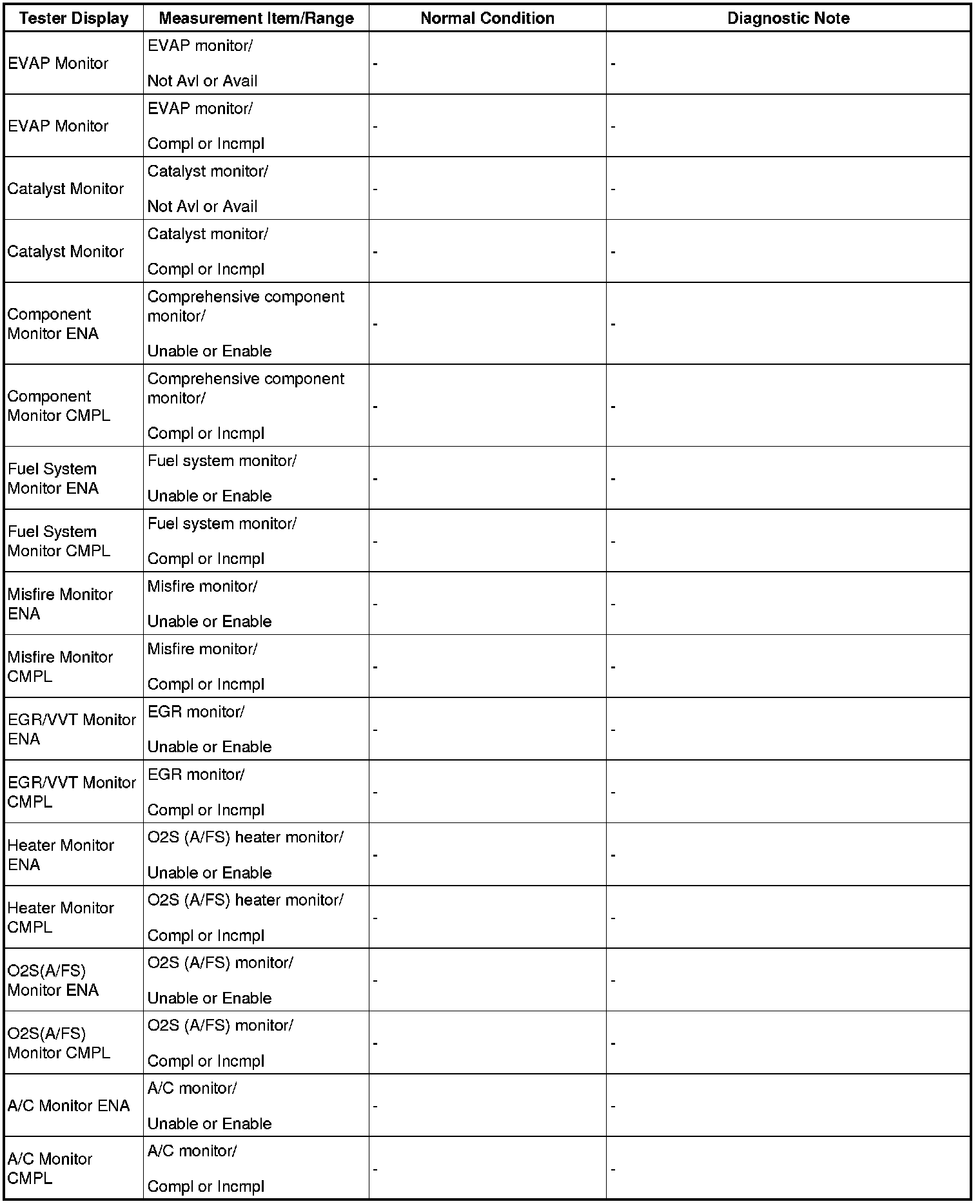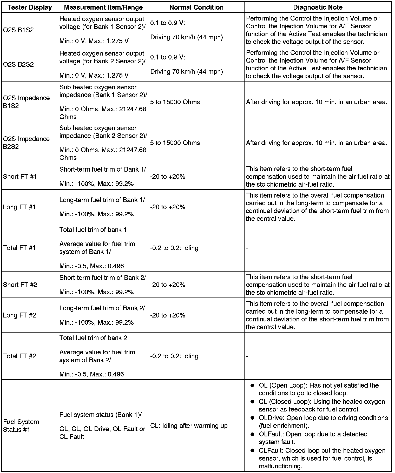 - Normal Condition: If no conditions are specifically stated for "idling", the shift lever is in N or P, the A/C switch is off and all accessory switches are off.
