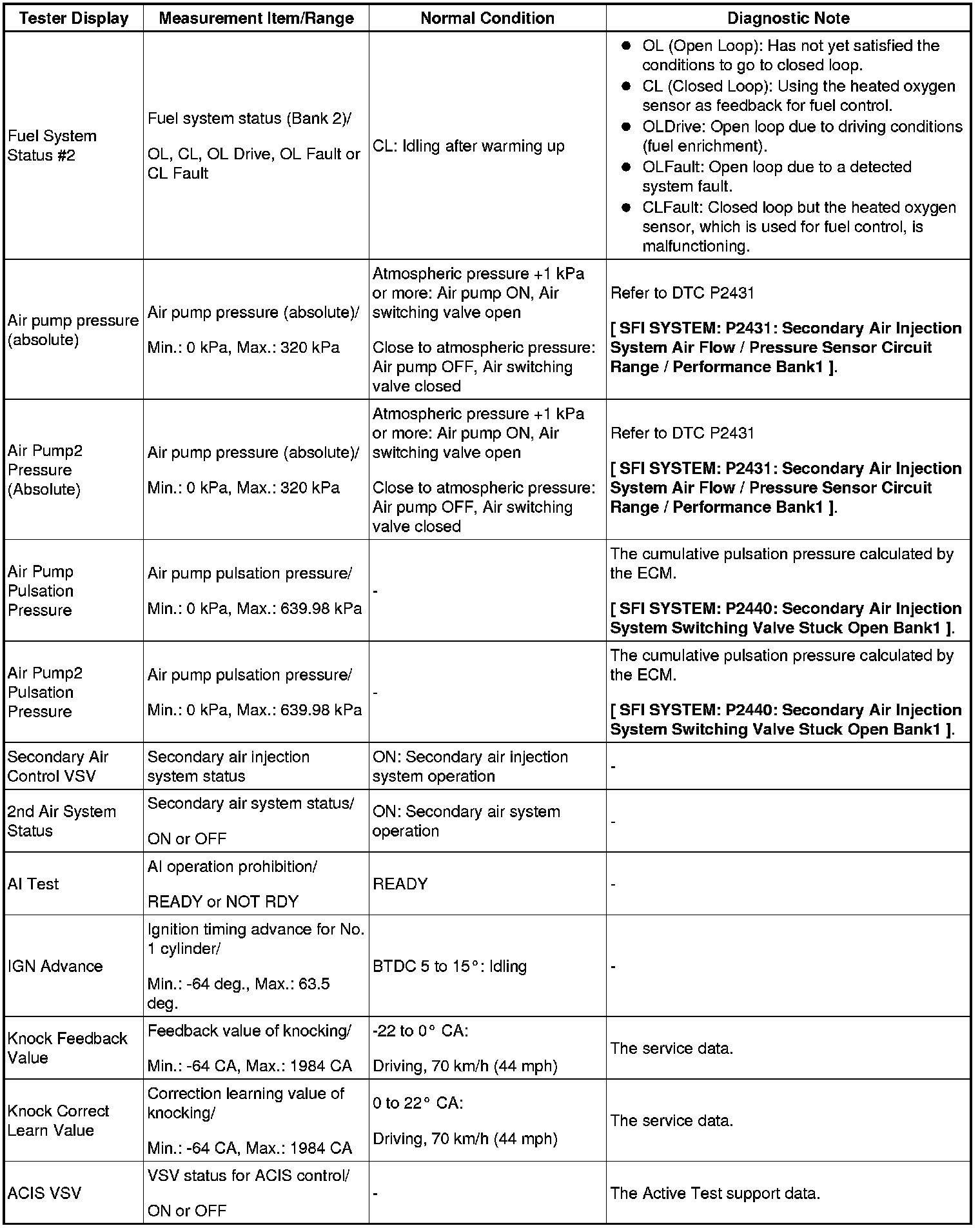 - *: Data List values are only displayed when performing the following Active Tests: Control the VVT Linear (Bank 1), Control the VVT Linear (Bank 2), Control the VVT Exhaust Linear (Bank 1) and Control the VVT Exhaust Linear (Bank 2). For other Active Tests, the Data List value will be 0.