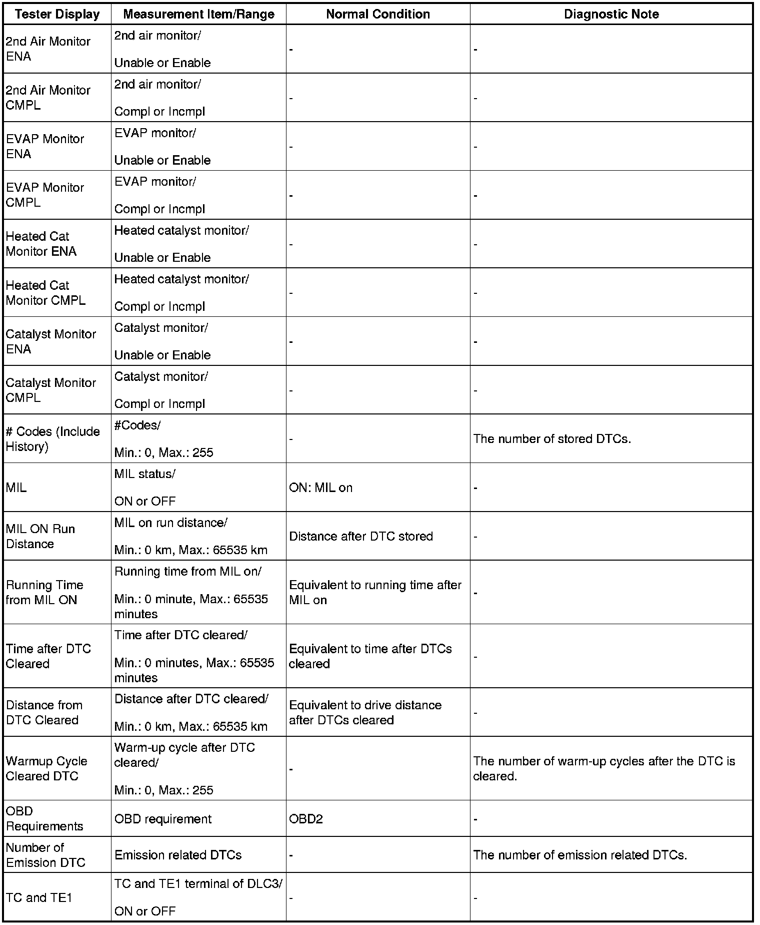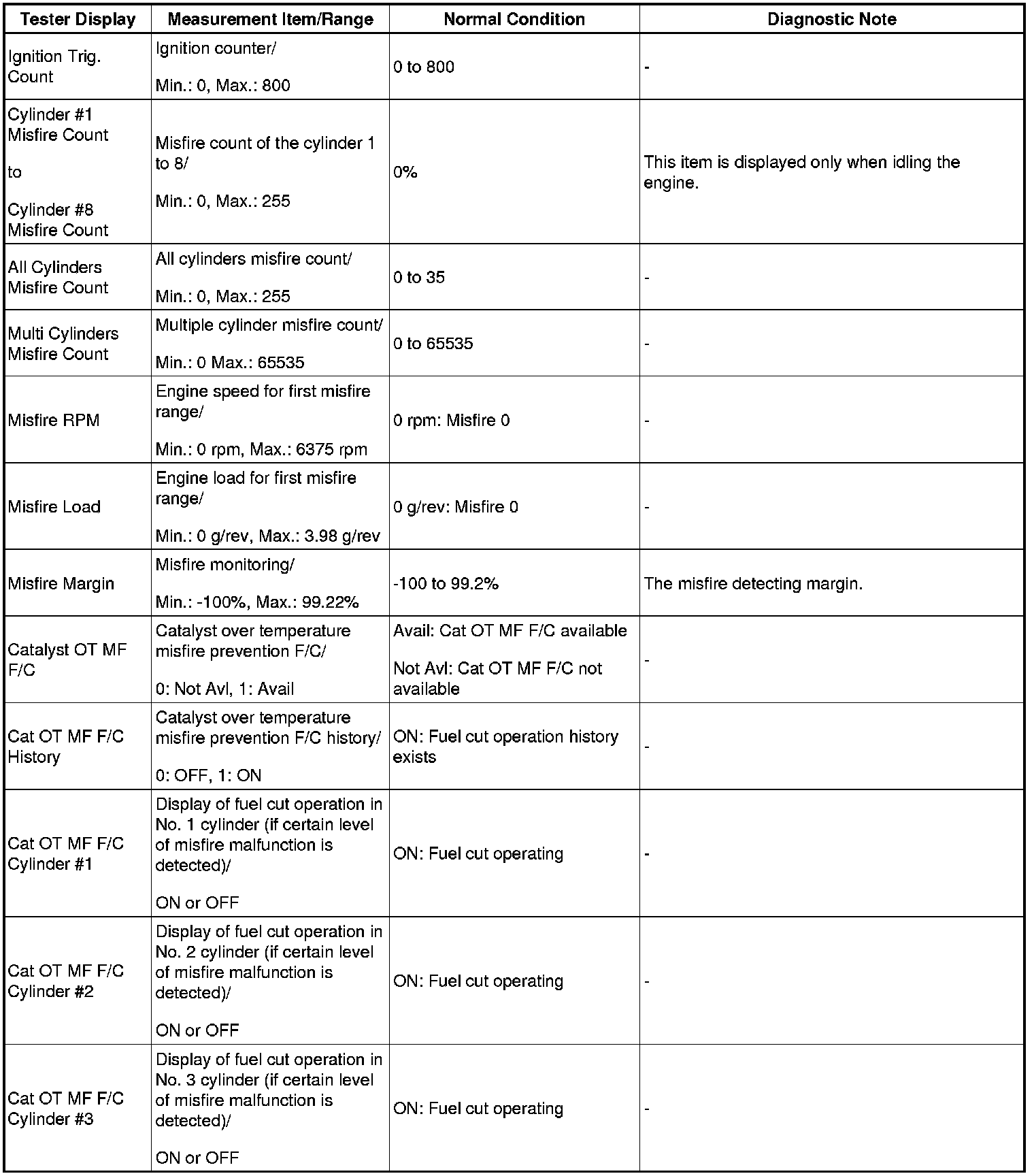 - *1: If the display of the Data List Prohibit the Catalyst OT Misfire prevent F/C item is Avail, perform this Active Test as described below.