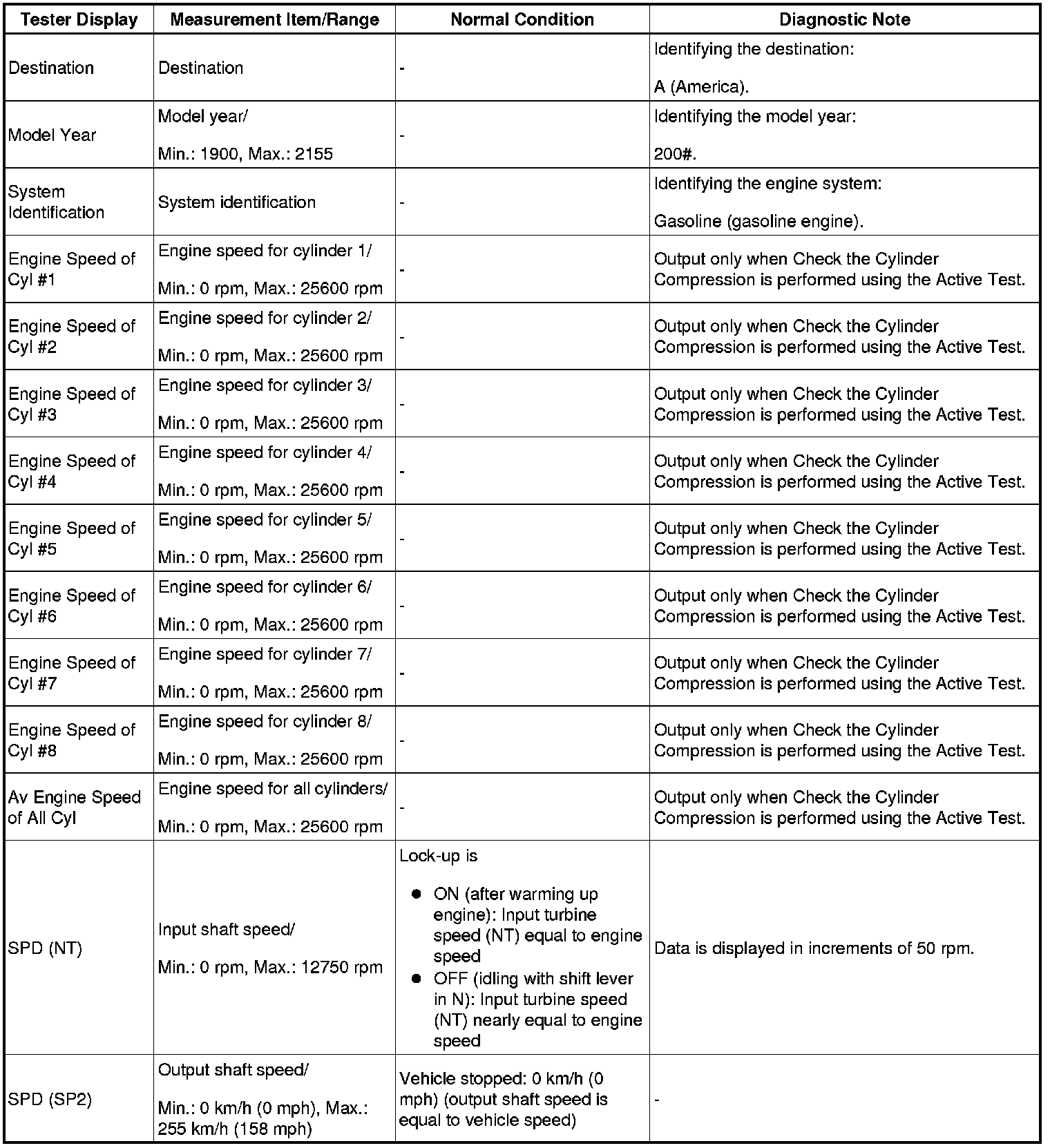 *2: When cranking the engine, each cylinder measures the engine speed.