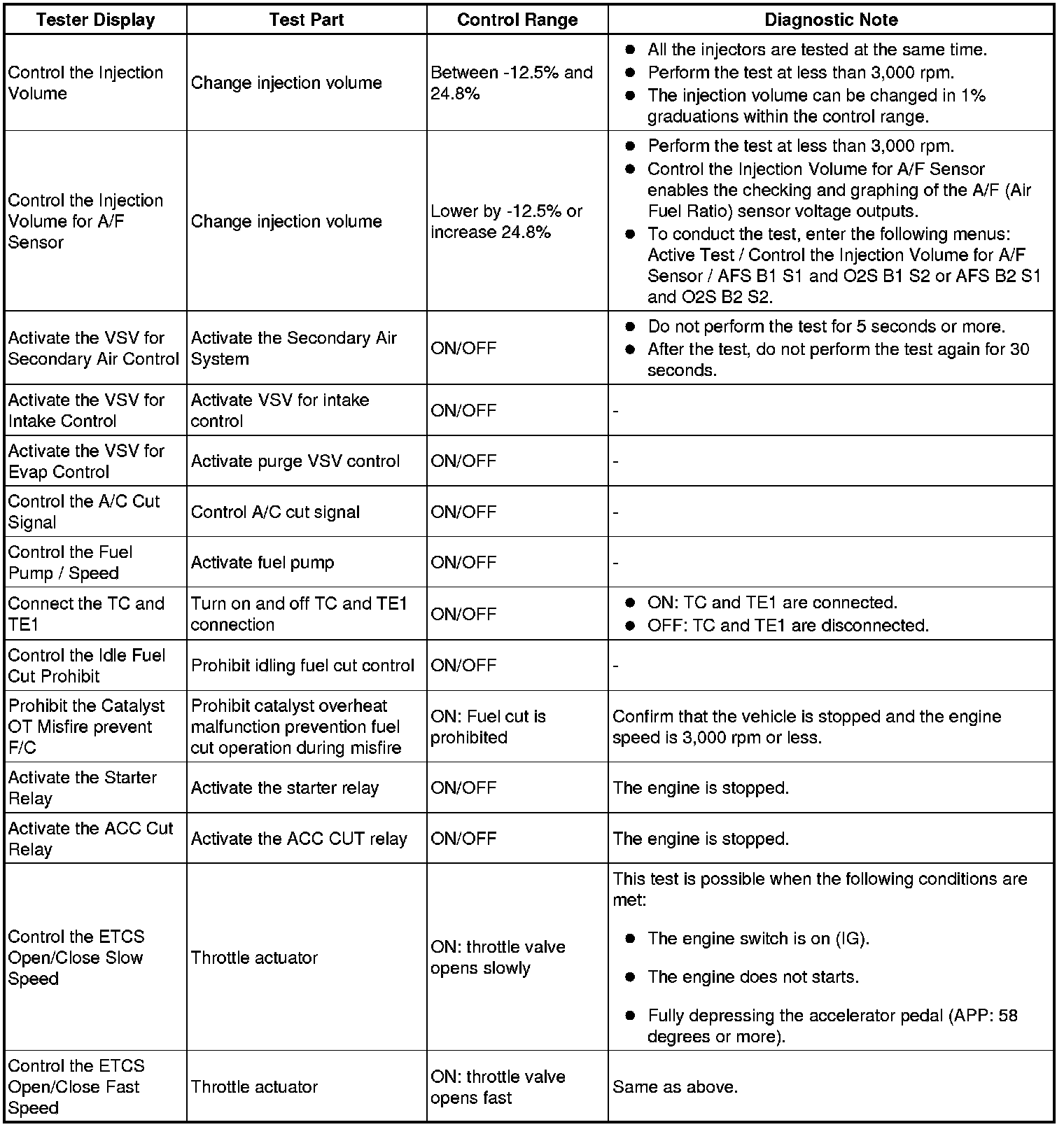 - *1: If the display of the Data List Prohibit the Catalyst OT Misfire prevent F/C item is Not Avl, perform this Active Test with the vehicle stopped and the engine idling.