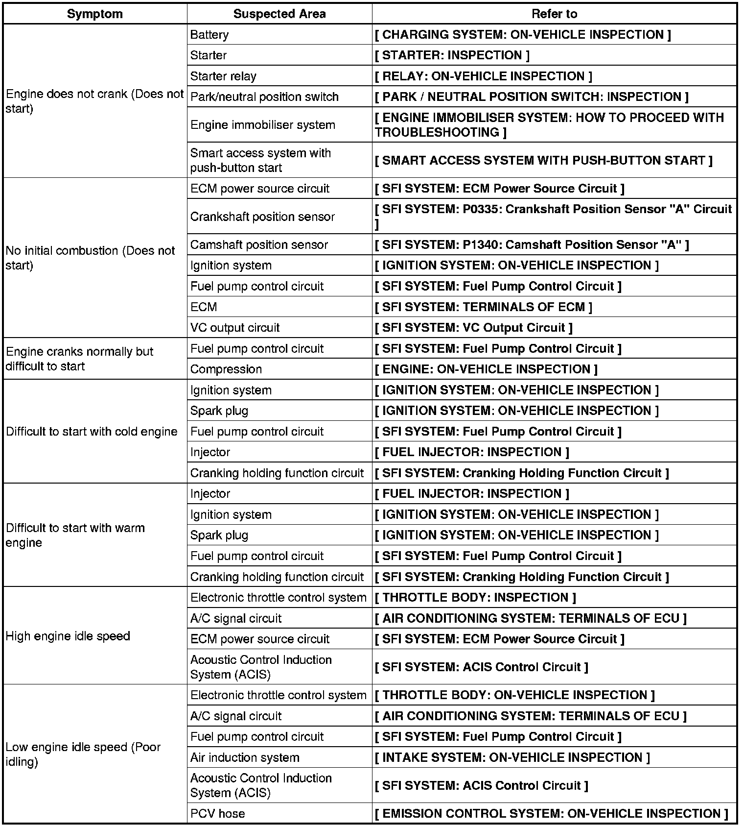 3UR-FE ENGINE CONTROL: SFI SYSTEM: PROBLEM SYMPTOMS TABLE