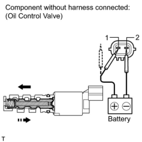 If the result is not as specified, replace the oil control valve assembly. If the valve cannot return properly because of foreign matter, a small pressure leak in the advanced direction may occur and a DTC may be output.