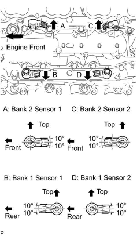 (a) Install the 4 sensors with the 4 bolts so that the sensors are angled as shown in the illustration.