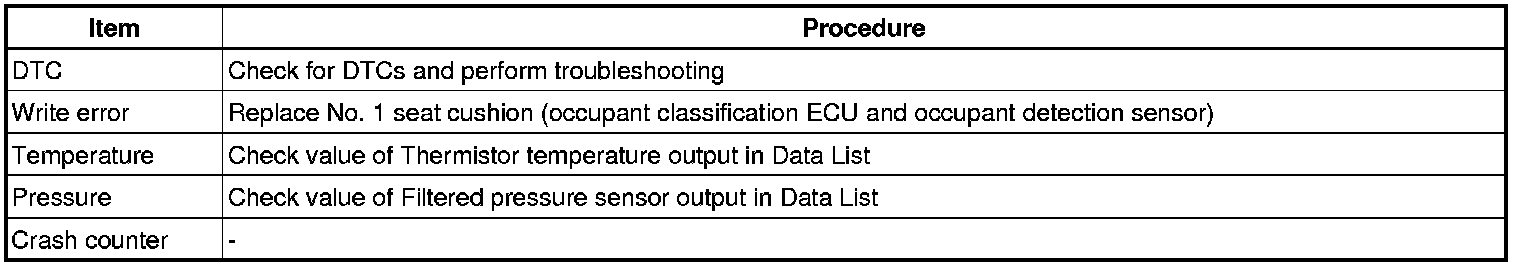 - The No. 1 seat cushion (occupant classification ECU) is replaced.