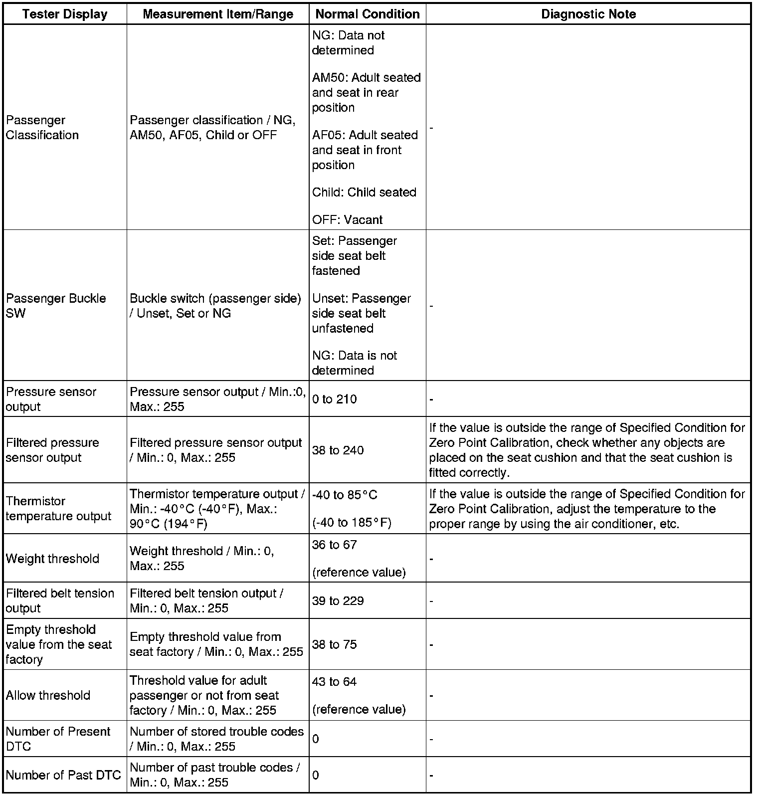 SUPPLEMENTAL RESTRAINT SYSTEMS: OCCUPANT CLASSIFICATION SYSTEM: DATA LIST / ACTIVE TEST
