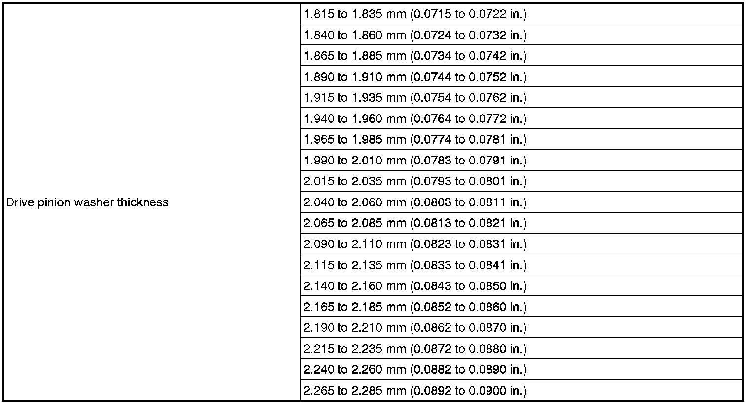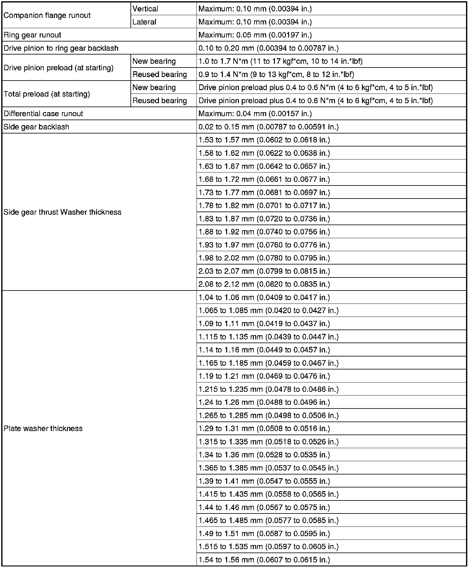SPECIFICATIONS: AXLE AND DIFFERENTIAL: SERVICE DATA