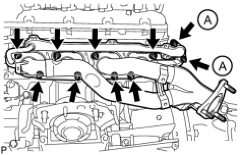 Final pass: Uniformly tighten nuts labeled A 10 Nm (102 kgf-cm, 7 ft-lbf)