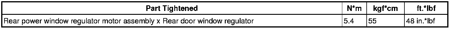SPECIFICATIONS: WINDOW / GLASS: TORQUE SPECIFICATIONS