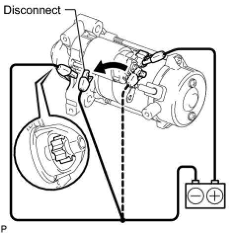 (1) Disconnect the negative (-) lead from the starter body. Check that the clutch pinion gear moves inward.