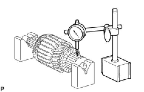 (e) Using a dial indicator, measure the commutator runout.