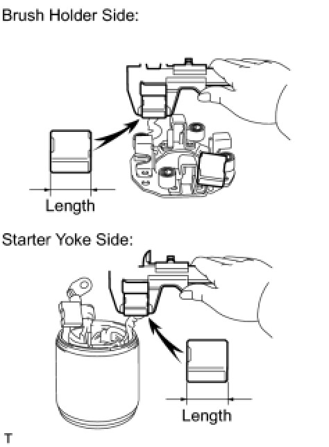If the brush length is less than the minimum, replace the starter brush holder assembly and yoke assembly.