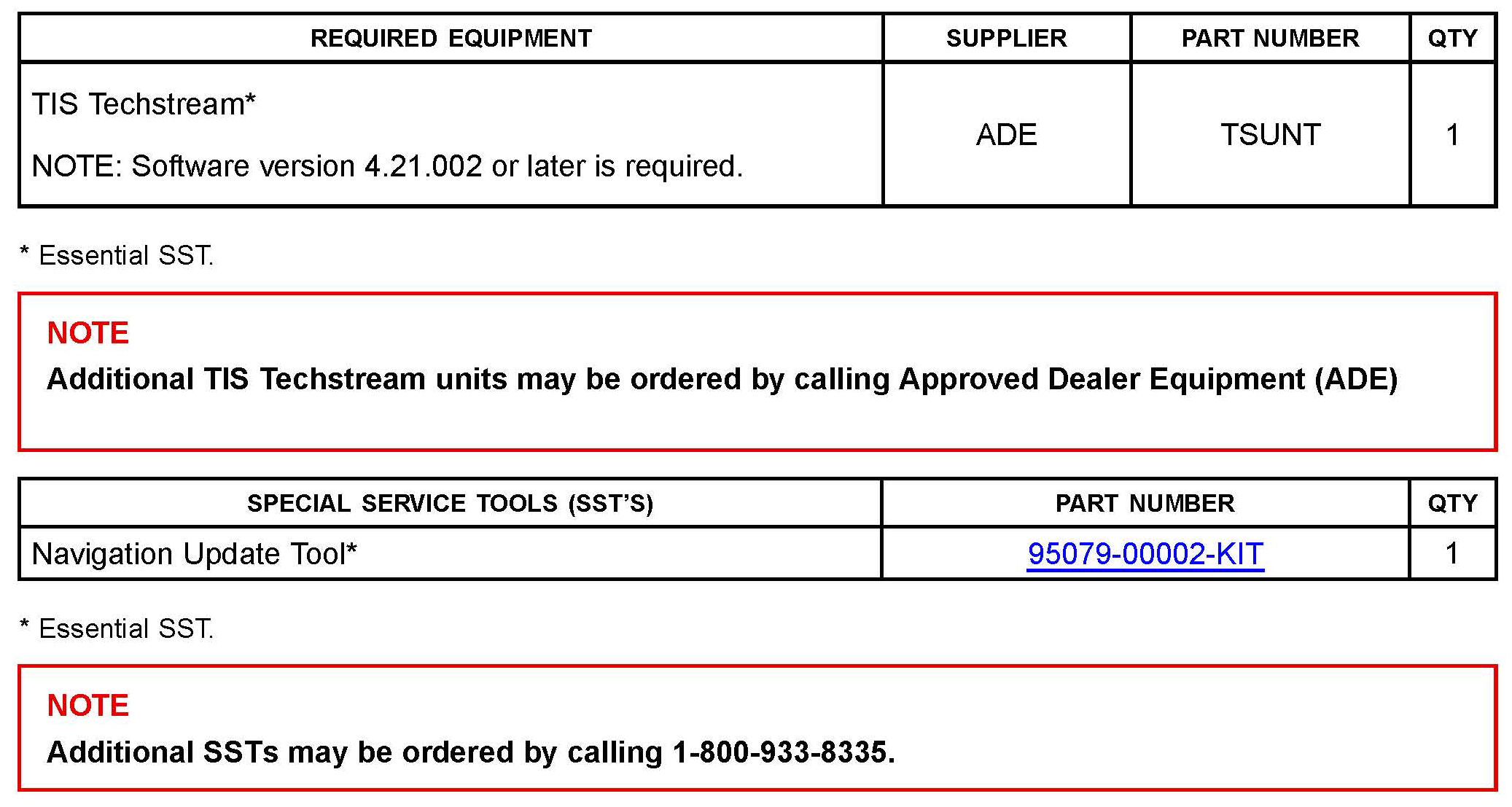 ^ For additional details, refer to the "Navigation Update Operating Manual" on TIS (under Diagnostics / Tools & Equipment / Navigation Update Tool tabs, "Reference Documents").