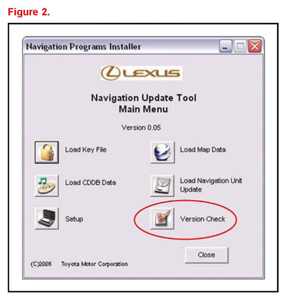 2. Click Version Check on the "Navigation Update Tool Main Menu".