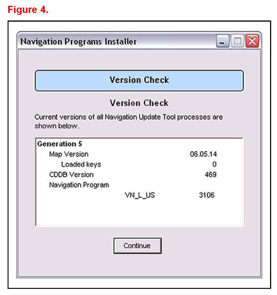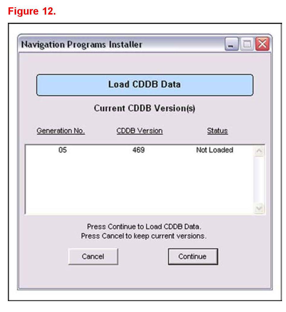 6. Click Continue to load CDDB data onto the Navigation Update Tool.