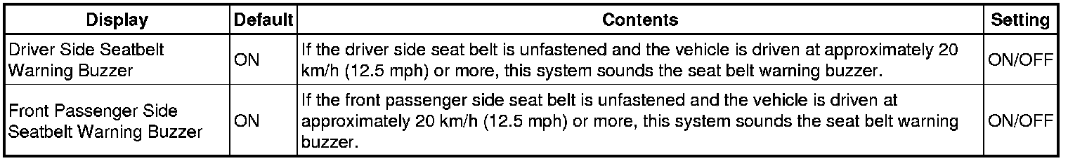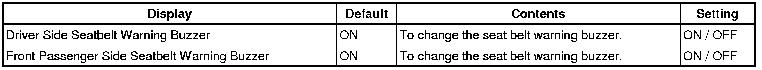 (j) SEAT BELT WARNING SYSTEM