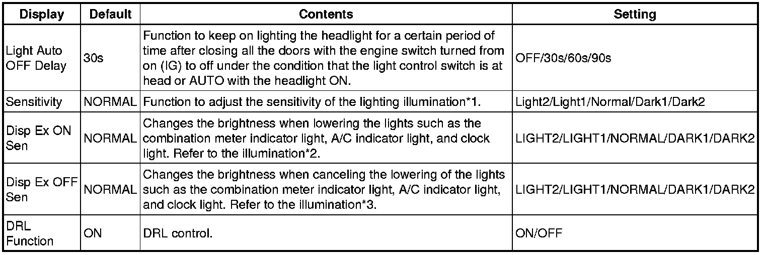 *3: "FRONT" means front, and "ALL" means front floor, rear floor and luggage compartment.