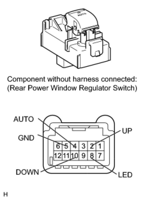 - If the result is not as specified, replace the rear power window regulator switch assembly.