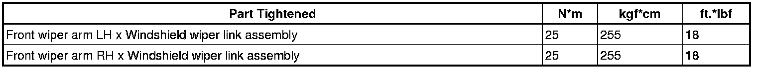 SPECIFICATIONS: WIPER / WASHER: TORQUE SPECIFICATIONS